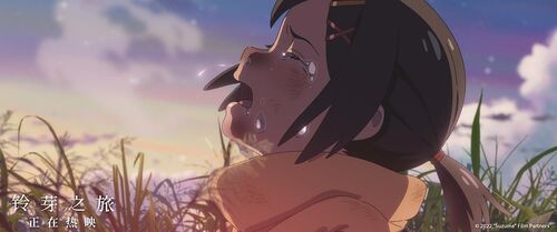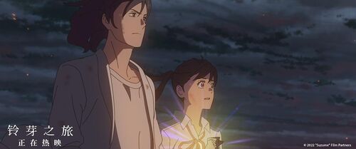 还有看到大家在讨论铃芽和草太的感情,其实这次这部电影主要想讲的是铃芽,她自我和解和自我成长的故事,我觉得不能单纯描写情愫,需要让铃芽和一个人之外的东西产生交流,让她更好完成自己的蜕变。而在处理铃芽和草太的感情时,我认为草太对铃芽来说是一个非常向往,却又未知的形象,她可能有些近似于憧憬的小情愫的感觉。所以我希望在大家观看整部影片过程中,能让大家关注的,不是他们两个人应不应该在一起,而是他们如何并肩克服困难,获得自我成长。