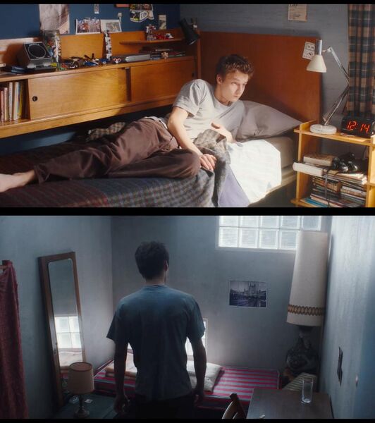 此外还有多处冷暖色调的对照,室外微冷的巴黎晨曦,室内的暖色装饰,也形成了主角内心世界与外部世界的空间对照。