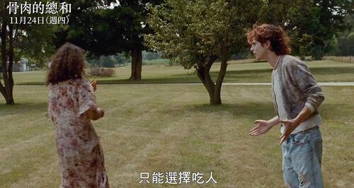 ▲ Logline:少女Maren嘗試面對和接受自己逐漸甦醒的食人本性,在尋找母親的公路旅途中,她遇到同為噬人族的瘦削少年Lee,兩人相伴上路。但母親的真實面目讓Maren再次對於自己的噬人族身份產生困惑,她抗拒殺人,拋下了Lee,卻又抵不住內心的真愛,決定帶著Lee重新回到人類群體,過上看似“正常”的生活。但一路尾隨Maren的怪老頭同類,打破了Maren和Lee的幸福,也讓這對愛到深入骨髓的情侶,在最後真正融為一體。