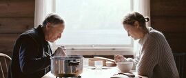 情欲的表达常常在电影叙事中对人物形象与内心状态的刻画起到关键的作用。本片中展现了两次艾莲娜与马修的亲热场景,第一次是在他们的法国公寓,过程中很快因为艾莲娜肺部的痛苦不得不停止,一种阻塞下的绝望与无助如此强烈。第二次是在芬兰的小木屋,这次两个可怜之人终于艰难却成功抵达。这也象征着艾莲娜终于重新获得对自己生命的掌握,尽管所剩时日不多。