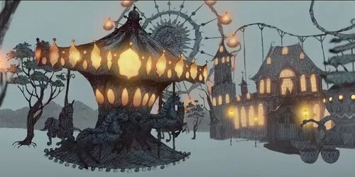 开头用讲惊悚故事的形式,一下把人拉进神秘的废弃游乐园,动画加强了黑暗童话的氛围感。一开始就奠定了这部剧的风格,魔幻中带点悬疑、还有一些童话色彩。