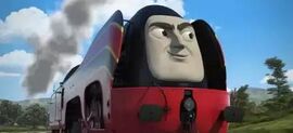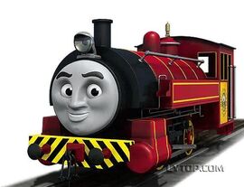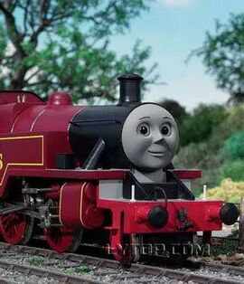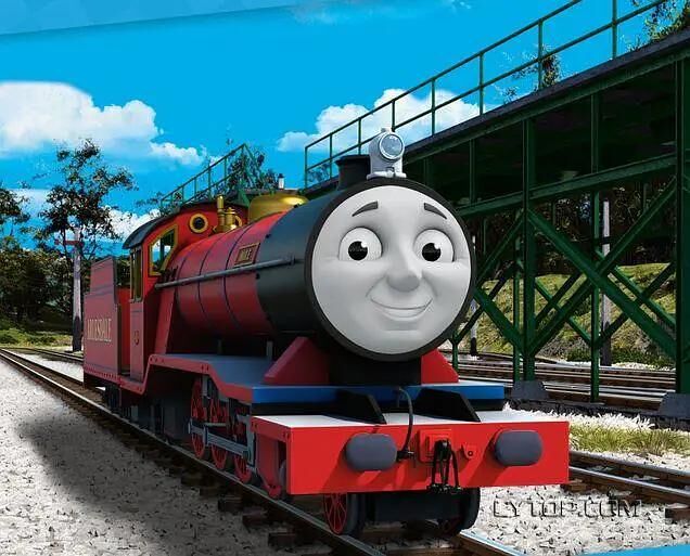 詹姆士是一个中等型号的火车头。他的6个驱动轮比托马斯的大,比高登的小。 他有鲜红美丽的外衣和黄铜穹顶,常常感觉自己是个很耀目的火车头。这种想法偶尔会让他对自己的工作产生不切实际的幻想,而这毫无疑问会给他带来麻烦。