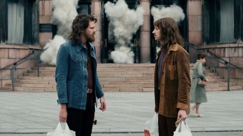 当然和传统的人物传记一样,也和传统的西方叙事一样,克拉克也最终逃脱不开“父亲”这个命题,他的父亲也逃脱不开暴力形象,罪犯的童年总是不快乐的,父亲是施暴者,母亲是施暴者加受虐者,毕竟我们的心理研究也没能突破更多的东西。但有意思的是,除了他真实的父亲之外,在克拉克的故事里还多了一个瑞典首相,一个隐秘的父亲角色,对应着他作为公民而存在的身份,于是克拉克不仅仅是一个罪犯,他还成了瑞典公民的一个缩影,克拉克的成长是被夹在父爱缺失的童年和被宽松社会的宠溺这两股力量之中逐渐迷失和扭曲的。