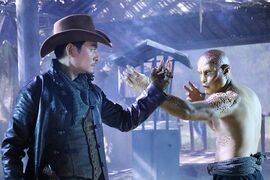 涂山门黄风召唤出蝗虫飞入镇里 蝗虫吃人 百姓躲入城隍庙 青鸾门掌门城隍附体施法护住城隍庙 黄风欲报几十年前之仇打破防护罩 黄风将符咒写在手上打退黄风 自己死了 留下一个孩子赵四海