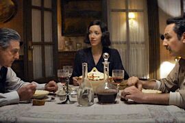 霍夫曼设计的蝴蝶胸针深受德国人喜欢,很快告罄,莫西尔首次设计的系列胸针得不到荣格少校未婚妻的认可,少校对他的大失水准也很失望。少校哪里知道,之前那些精美的胸针根本不是莫西尔做的。莫西尔无奈只能再来找霍夫曼,心知肚明的霍夫曼拒绝为德国人工作,莫西尔又用霍夫曼孩子来要挟,霍夫曼被迫答应,付给霍夫曼的工钱和他之前给莫西尔的一样。莫西尔的这种主仆关系置换让霍夫曼心寒。霍夫曼制作的老系列胸针再次得到荣格少校的赞赏,少校给了莫西尔一大盒子品质上乘旧宝石让他制作,不要钱,还货源充足,来路彼此心知肚明,每一次莫西尔去纳粹总部拿货回来,在半路上都把那些旧宝石盒处理掉。就这样莫西尔珠宝店成了纳粹罪恶的代工厂。