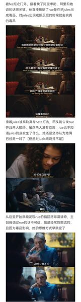 说真的看到这里我还是很同情rue的,她接下来会不仅会众叛亲离,还要面对毒贩的压力,第四集片尾的E镜头坐实他快死了,盲猜这一季结束的时候rue和jules会彻底分开【为第三季做铺垫】【喜欢的话留言给我哦!考虑写一个jules的单人整理】