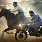 对于印度电影(尤其是南印度电影)来说,[RRR]算不上脑洞大开,有着印度人对英雄一贯的超级/神化想象,打破各种不可能。除此之外,它的剧情编排非常严谨,每一个重要的情节点以及镜头表现的张力都设计得很好,很有革命现实主义文艺的煽动性,只是当它和极度夸张化的英雄形象结合后,就变得很不现实了。
