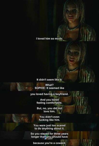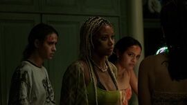 找真凶过程中警告姐妹“你没看过探案剧吗不要碰证据”,中途不忘吃 Xanax (吃糖似的,“你要来一颗吗”)和 drug,然后互相猜疑 撕逼,人都死了几位还在每句不离 bitch 地大撕,一谈到 mental issue 就瞬间心软捂着心口流泪表示“sis我懂你”(实在是太懂我们 Gen Z 啦无论什么问题只要你也有心理/精神问题那我就原谅你),但下一秒就因为“你爸妈都是大学教授你就是 upper mid class 你还装自己白手起家”(好笑的是教授之女补了句“他们任教的大学是公立的”而不是私立我真的笑喷你们这群 rich kids!!!)和“你是不是不听我的 podcast 还讨厌它”而姐妹瞬间成敌开打,小腿中枪后还要继续撕。带着主角光环和为了 Gen Z 独立音乐的未来着想,所有人死了,除了 Clairo 和 Beabadoobee。大学教授之女死前留下的遗言是对 Clairo 说记得 check Beabadoobe 的短信。