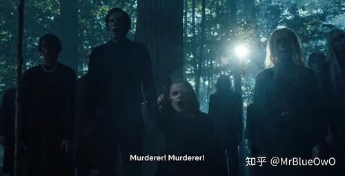 这里的一个细节是,这些车祸死者亲属幻像,除了小女孩,都没有鼻子,而大魔王也没有鼻子,说明他们都是替身。真正喊出“杀人犯”的,其实就是大魔王本人。