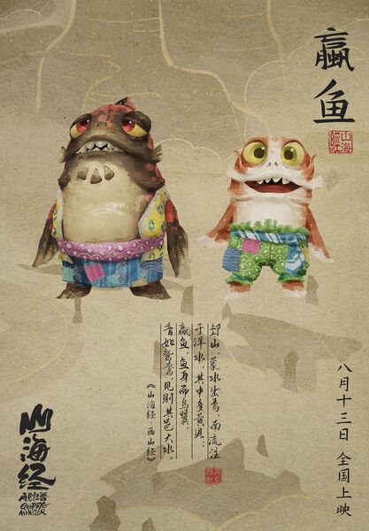 这两个无间道小随从,是山海经里一种叫嬴鱼的小神兽鱼。除了他俩,毕方的那一堆小不点兵应该也是嬴鱼,关于这种小东西,山海经记录不多。也正是海报上写的这几句: