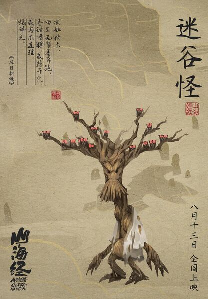 这位不是山海经里的。但应该是很多神话传说里流传下来的吃人树精。不过关于老树成精这个,不只中国,全世界估计各个文化传说都有。不说远了,就说现在的电影,比如《神奇动物在哪里》里面小雀斑的宠物之一就是专门开锁的那个小嫩树枝。《魔戒》里面参与战争的树精们也总是跑来跑去,另外著名的会说话的木头还有漫威电影里场合浣熊星爵一起出现的“树人格鲁特”,虽然他的单词量实在有点少。但毕竟会说话。换句话说,树妖是无国界到处流窜滴!