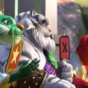 这个相对不是那么家喻户晓的小神兽。或者说是小怪物吧!出现在九尾狐的酒馆里,飞在天上,作用类似于酒吧闪光球一样的照明装饰器材,团团转的那一堆。山海经上对帝江的描述也不多,大概意思是他们好像黄色的口袋,没脸,但是有6只脚和4个翅膀,你别看它们没有脸,却能唱歌跳舞。所以乐队酒吧里肯定是打工一流的!不吃饭光唱歌啊!