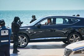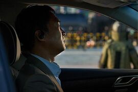 出场时先是特别给了一个背影的镜头,这个镜头的用意应该是想等他走到车旁,开口说话的一瞬间,听声音观众才惊觉:“就是他!”