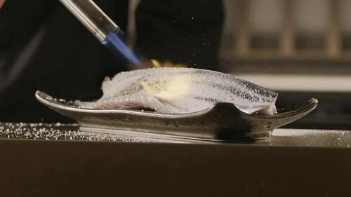 一个镜头闪过,它们就变了样子:整排的鱼被腌制了挂着,鲍鱼被切了花刀,鱼肉被炙烤或是被熟成,还有海胆、虾、龙虾、章鱼……它们一个个看起来好吃的不得了,可偏偏都一闪而过,我一次次摁下暂停,恨不得一帧一帧截屏下来——海洋生物怎么可以看起来这么好吃啊!
