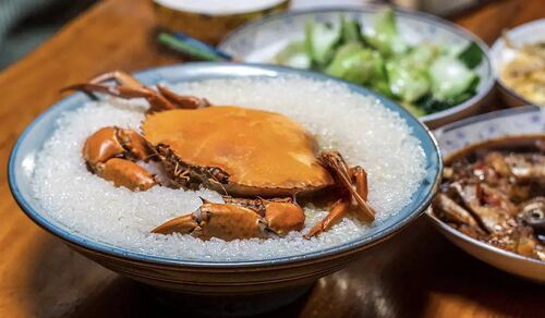 咸食(鱿鱼海蛎皮皮虾包进番薯面皮)、金蟳(当地一种锯缘青蟹)糯米饭。