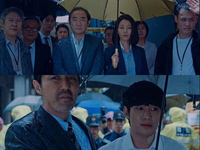 那是什么促使他这些改变呢?没错,是“失望”。对检察官失望,对法官失望,对众审团失望,对自己的父亲母亲妹妹失望,对这个世界的生存法则失望。之前指望父母帮助他,指望法律还他公道,后来却发现母亲不愿接自己电话,妹妹把遭受的所有不好事情全部全怪罪给自己,警方和检方一个个张牙舞爪想致自己于死地以换取他们的升职和荣誉。金贤秀见识到了这个世界对自己的恶意,他发现谁也靠不住,唯独只能靠自己,于是他变身了,割掉了自己的懦弱,完成了自我救赎。