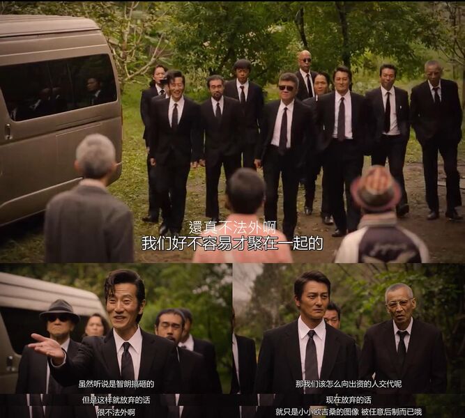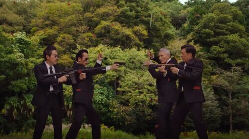 據遠藤憲一所述,《法外之森》最後一幕是四大叔們統領的四個組織的交火大混戰,直到只剩下一人存活為止.