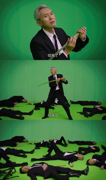 不知過了多久,拍攝棚中撒下了道具落葉,此時還倖存的也只剩下了豐叔、研叔、智朗叔和遠憲叔.他們緩緩接近彼此,最後一次舉起了武器......