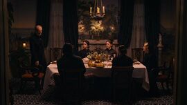 色彩,构图,配乐,都是一流的。有明显的色差,但都让人觉得眼前一亮,视觉上有对比但很舒服。色彩上是容易让人联想到good old days类似短语的暖色调,同时又透露出一种似有似无的朦胧的希望与憧憬。即使是阴暗的画面,反而就让那黑色来得彻底,辅以低饱和的红色,蓝色,令人觉得有些恐怖,但又不完全害怕。说到这里,艾米丽进棺材到地下那一段真是太棒了。一身白裙的她一直往下走,那地方就像是美利坚的十八层地狱,地狱里是对她怨声载道的家人。她在旋转楼梯里走呀走,一直往下走,走不下去了,推开门,屋外寒风凛冽,她又成了持枪士兵,被突如其来的炮火轰得晕头转向,她在角落里祈祷着亨利所在的队伍胜利。果然,他们胜利了。希望也随着附有拉维妮娅阿姨灵魂的黄色小鸟的叽叽喳喳被唤回。