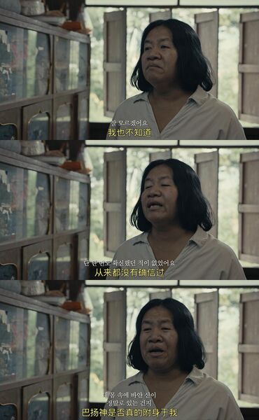 她以为她所感受到的存在是妹妹口中所说的“巴扬神”,还企图依靠这股力量对抗女儿身上的恶灵。