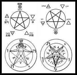 但尖角向下把精神倒过来,就成了倒五芒星,是地狱和魔鬼的符号。