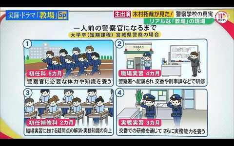 第一阶段,是在警校被任命为巡警的初任科的学习。大学毕业生要参加6个月的培训,高中毕业生参加10个月的培训。(这也是《教场》系列主要展现的阶段)第二阶段,就是要分配到下属派出所进行4个月的职场实习,实习结束后还要回到学校进行为期2个月的辅修科学习,最后再下派到各个派出所进行3个月的实战实习。所以,成为一名正式的警察至少要经历15个月的培训及考验。