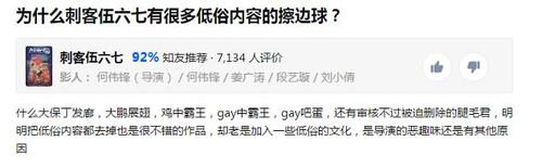 某“精英论坛”知乎上,就有人对《刺客伍六七》的低俗元素开炮。