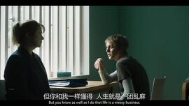 第三次见面,Connie没有等到她的Ness。Emma脱下了西装,有别于以往她一直都自始至终穿着正装与Connie会面。这个细节也说明了她开始逐渐对Connie放下该有的距离和戒备。后来Connie站起身来接近Emma的这一段也非常经典。镜头转为特写,你可以看见眼瞳里的光泽。Connie就这么直接地探入Emma的灵魂深处。她说:"What stunning eyes you've got. What did you do, my lovely? Why are you so full of pain? What happened?" Connie在乎Emma吗?我不认为。她真的读懂了Emma吗?我很怀疑。但是我相信Connie可以看见Emma灵魂中的暗色。