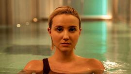 与此同时,女主在朋友介绍下加入了一家女性陪伴俱乐部,开始了以Cassie之名从一个全新的角度探索自己性魅力的生活。中间有几段女主与客户往来的记录,其实都不是闲笔。与大人物的来往,看似充满对人的尊重体现出来的教养,以及两人在世外桃源般林中屋与世隔绝度假,返祖般重回人与人的亲密关系,但欲抑先扬,这种让女主真假莫辨的亲密关系却戛然而止与大人物不和其同样服务性质的女性往来超过五次的规矩中(政治与美的关系是政治因为虚伪和拒绝了美);与棒球运动员的来往,表现了女主在两性关系中操纵对方的能力,把一个讨厌自己的人从行为到教养都提升了不止一个维度,更别提对女主的迷恋了,但运动员因为过于迷恋女主想独占她,结果弄巧成拙反而失去女主(流行文化的浅薄与无良不配得到美);此外,报社老板与其交往那一段,最令人印象深刻是女主穿着苹果绿的塑胶皮衣模仿裁纸间机器人跳舞的那一刻,体现了当代媒体对美和亲密的塑造走向了异端,把人和人的往来引导像人与机器的往来。(传媒与美的关系是传媒因为妄读美的概念而不知美)。
