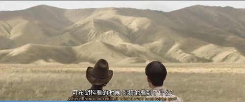 本片在此前的情节里Phil也曾站在别的牛仔身边眺望远山。那个牛仔问他到底看到了什么,说他总是这么眺望一定看到了什么东西。又问他George有没有看到Phil所看到的。Phil先是笑而不语,然后说看到了就是看到了,没看到就是没看到。山的那边并无什么东西。