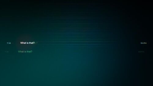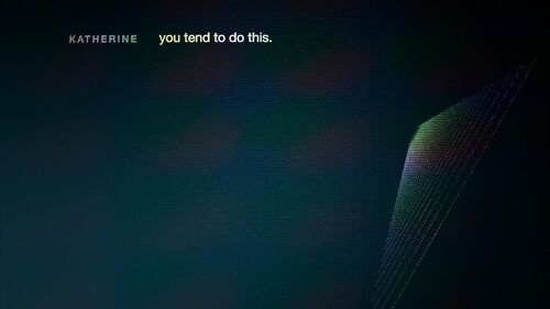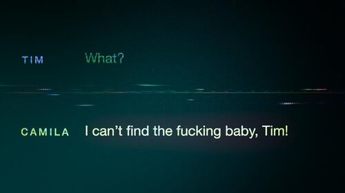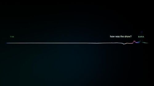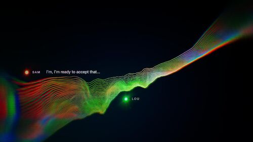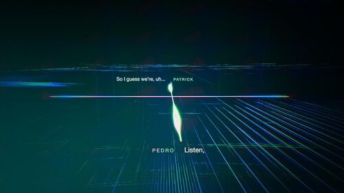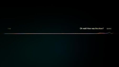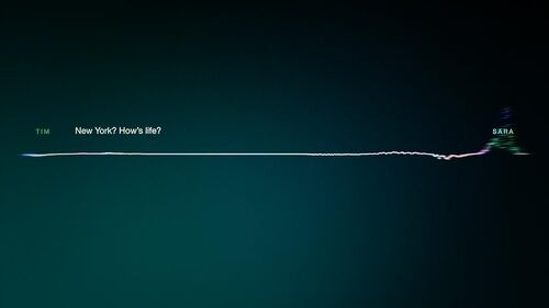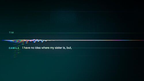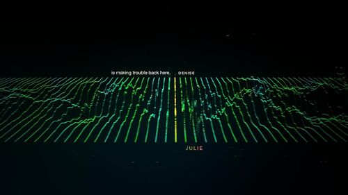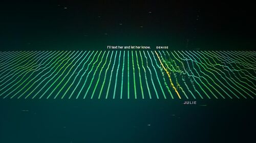 最后回到了Tim的故事,Sara的那句"It's pretty boring"没有被干扰,通话质量与EP1对比,声波跳动幅度平稳正常了许多,而线条颜色也比EP1均匀(EP1里颜色主要集中于线条两端)