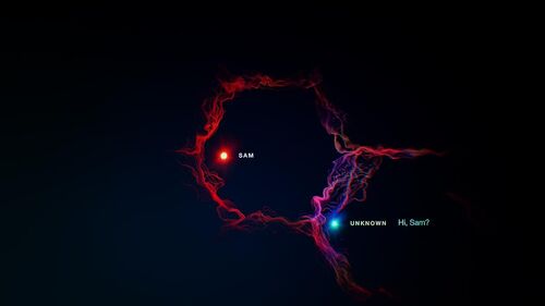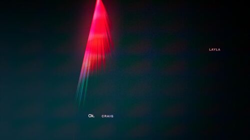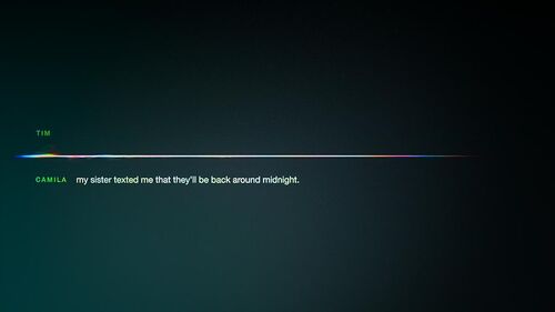 之后小三Camila进场,并要求Tim下次再打电话就要把Sara甩掉,与此同时一个未知的号码打了进来,一阵诡异的笑声伴随着信号干扰的蓝色画面,Camila2号出现了,此处可以断定又发生了一次glitch,而Tim和2号Camila处在不同的时空。