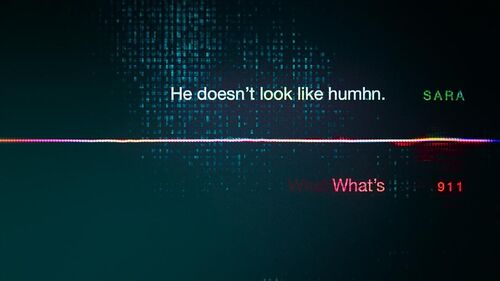 之后接线员询问窗外的陌生人是白人黑人还是Hispanic,Sara惊慌的说"He doesn't look like human" 同时这里的"human"一词开始出现乱码。