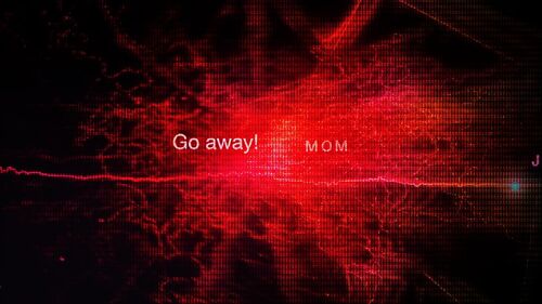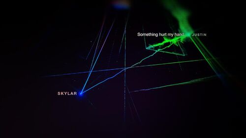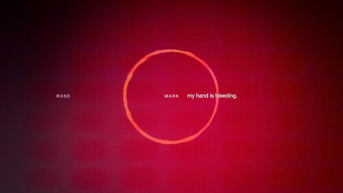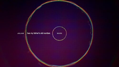 在第一次通话时,较细的同心圆从Mark中心自内而外慢慢扩大,"my hand is bleeding"同时背景色变成红色(红色在本剧中意味着鲜血,经常会出现)