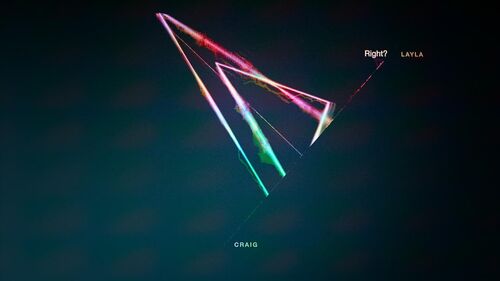 到现在为止其实并没有一个很确定的三角形呈现在画面上,直到Craig说完"I miss you"之后,三角形才真正开始显现,里面的颜色也都是由红蓝绿组成的