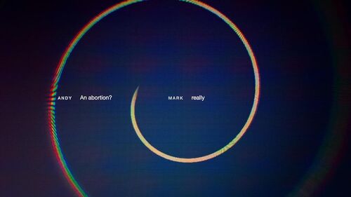 此时另一个时空的Darlene打进来,平面直线变成了一个圆环,Floyd与Darlene通话时,Ana的颜色黯淡了下去