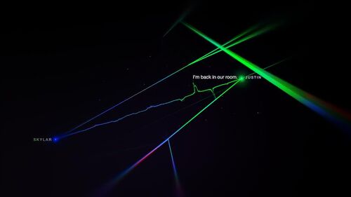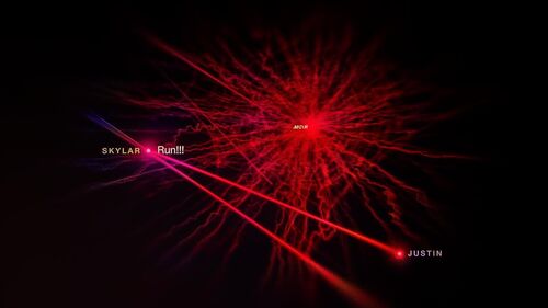 在Mom接到来自未来女儿警告的几年后,决定不去接女儿,在与16岁Skylar通话的一开始,放射状的曲线就从端点一直蔓延不断增长,命运已被改变,修正也无可避免了