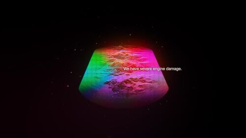 不过值得一提的是在最后世界要毁灭之时,突然响起带有电流声的尖锐机器重置声,画面也出现了一对按钮般的三角柱,随后之前发生的所有故事以倒退的方式回顾给我们,此时所有的线条都只有一种色彩,那就是彩色,同时背景还有一种倒带回溯那样咻咻的声音,推测最后年轻的老博士关掉了机器,成功还原了宇宙