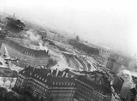 盖世太保总部被8枚227公斤炸弹命中,6枚命中总部大楼的西侧, 2枚命中东侧。大楼西侧当即起火,随后火势失控,越烧越大,而当天正好刮着强劲的西风,火借风势,迅速蔓延到大楼的其余部分,最终整栋大楼被烧塌。
