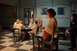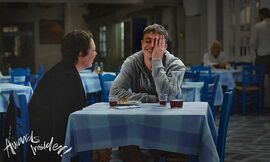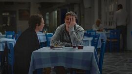 她离群索居,避免和其他游客产生虚情假意的交流,在旅馆里独立住了两三天,才头一回坐到旅馆楼下的餐吧里用餐。旅馆管理员出自善意想陪伴独自用餐的勒达聊天,却遭到了勒达直白的拒绝。左思右想到餐完毕,勒达才开始后悔刚才自己的举动,或许出于歉意、也或许是出于“旅游在外总是要寻找刺激”的心态,勒达还是决定径直走向管理员。管理员正背对着她打牌,勒达鼓起勇气狠狠地拉低了自己的衣领,悄悄凑近了管理员的耳朵,亲昵地说了一句挑逗的意大利语,结果把对方吓了一大跳。