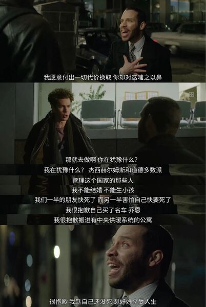 当拉森在头脑中幻想着不屑的豪华公寓楼和奢侈生活,也就是这首由纯粹歌舞编排支撑起来《No More》,每当电影切回到他冰冷的生活现实,观众便不会那么轻易地对他的选择产生英雄主义式崇拜。