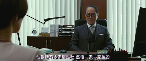 受到如此之大的丑闻波及,《小说薰风》停刊,宫藤也因此而引咎辞职。东松实现了自己的目的,本以为接下来可以顺利地推动“利牙”的实行,一个巨大的打击却扑面而至。