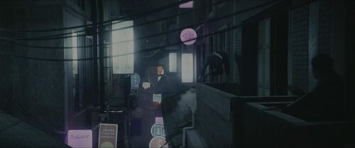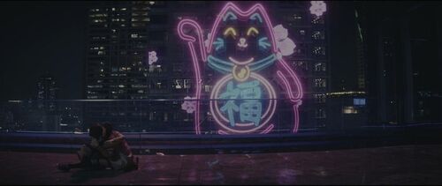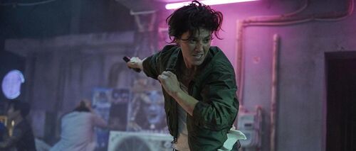 正因如此,主角光环实际上已残缺坠灭,俗套设定(赛博朋克与霓虹美学的东京、开头便不难猜到的反转、注重忠义家庭vs.只看个人利益的东西方帮派组织图示化的二元对立)与不够盛大绵密的战斗场面(的确不可与《杀死比尔》相比,亦不如《疾速追杀》系列——尽管共享了动作指导团队)也已经不复碍眼、不再紧要,影片对女主人公面临无可挽回之死亡时五味杂陈的心绪(愤恨、哀伤、不甘、无奈、执拗、决绝、不舍与心死)及其生命本相的展现才是此类动作/特工类型片中绝无仅有的。换句话说,表象、动作与剧情已然不是关键,唯有切近的情感、身体感知、个体生命终究难以回避抵挡的死亡才是我们自身与这部影片的核心。