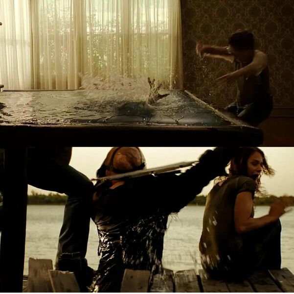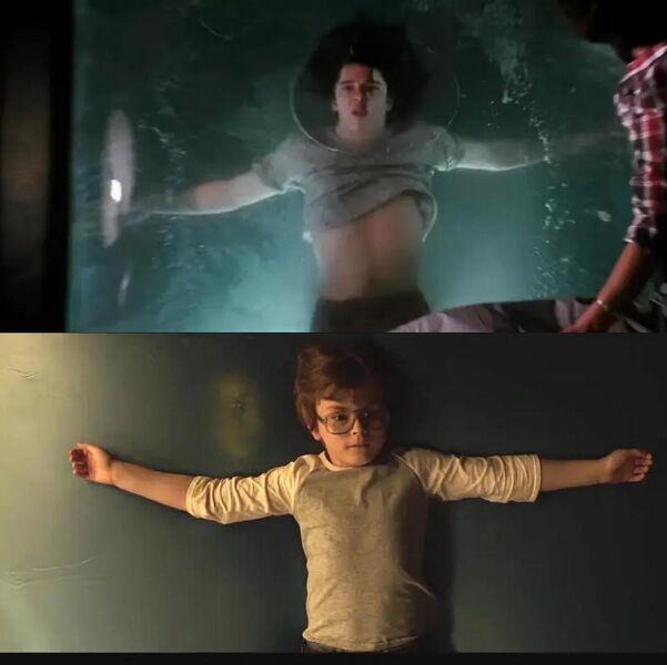 2. 影片开始孩子大卫进入新家后躺在水床中被拖入水中的片段也是明显致敬了十三号星期五杰森拉人下水的片段。