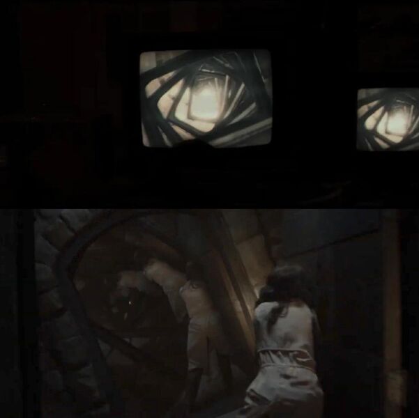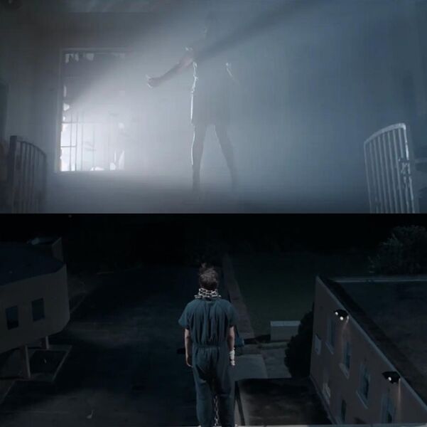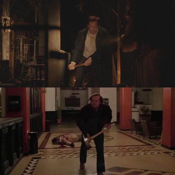 1. 艾德被神秘学家迷惑住后拿起榔头追赶劳伦的片段很明显致敬了恐怖片闪灵中杰克追赶温蒂的经典片段。