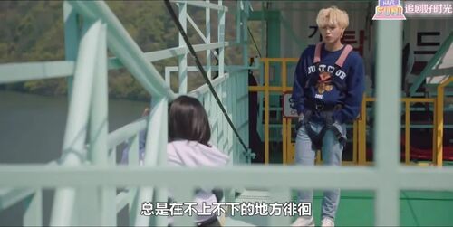 在学姐犹豫不敢蹦极的时候,学弟对学姐说了经典台词。