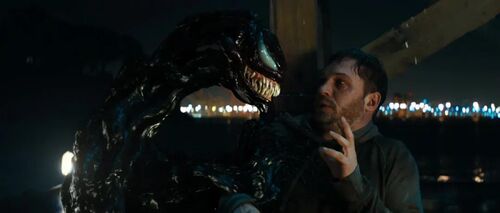 24. 第一个彩蛋是汤姆·哈迪版的毒液,他被送回自己的宇宙之前,留下了一小片毒液。