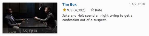 最后,喜欢类似审讯室题材故事的小伙伴,不妨看一看《神烦警探 Brooklyn Nine-Nine》第五季第14集(单集故事,无需补剧),20分钟,更加浓缩的剧情与紧密的反转,更别提来自《我们这一天》的演员Sterling Brown的爆炸演技,妙哉妙