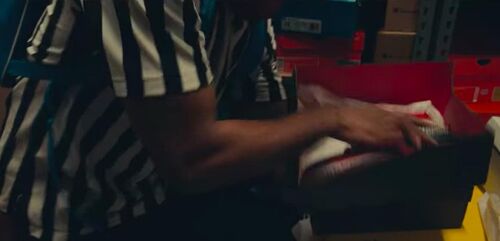 回家的路上,德温明白了自己还是放不下球鞋情结,用高价购买了自己心仪已久的AJ 4 白水泥,左手捧鞋,右手捧花,和老婆重归于好(这里很感动)。皆大欢喜的happy ending。