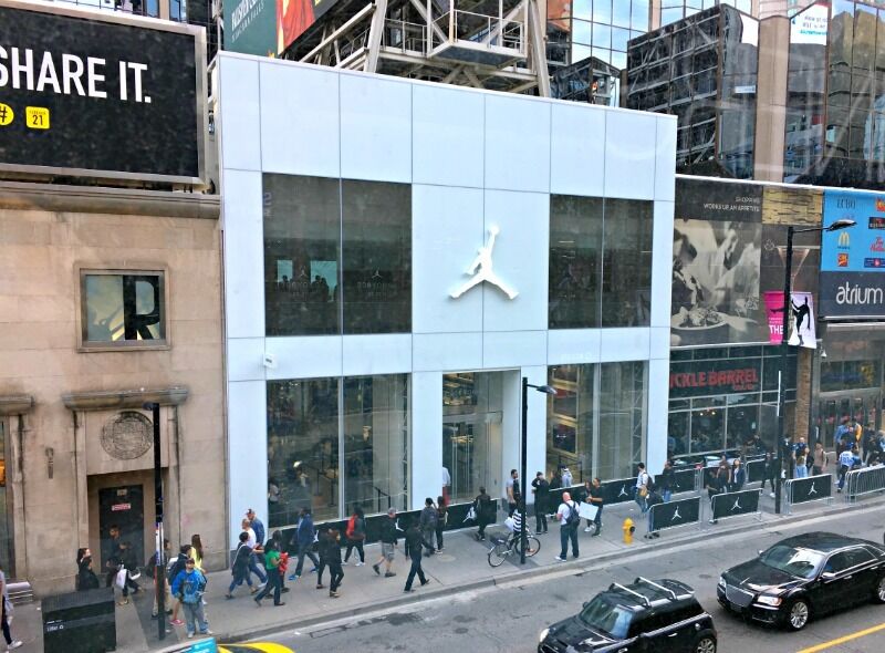第一次是与几个朋友在多伦多市中心的“Champs”排队接近16个小时,为了得到乔11的“Concord low”。最疯狂的一次应该是多伦多第一家Jordan Store开店时,和LL还有两位朋友四个人一起在零下十几摄氏度的情况下在排了将近30个小时--就为了当时还是超级限量的多伦多潮牌 October the Very Own 与 Air Jordan 联名。那真的是一辈子也不会忘记的回忆,当然估计我们也只会疯狂一次,再也不会干了。